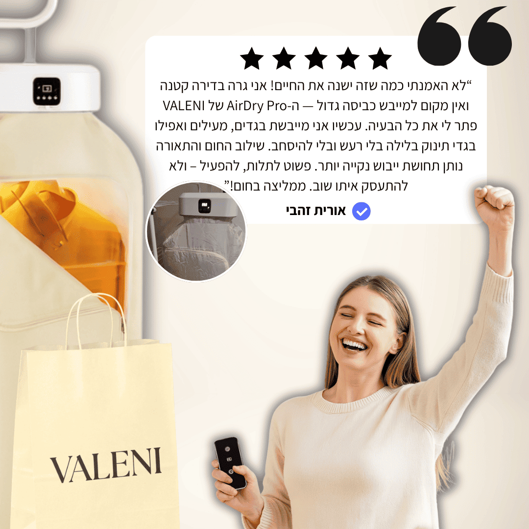 במקום לחכות שעות, פשוט תולים את הפריט הדחוף, ותוך זמן קצר הוא יבש, חמים ומוכן ללבישה.